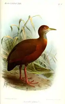 The red-throated wood rail (Aramides gutturalis) is a disputed species of bird in the family Rallidae. If it is not a misidentification, it was endemic to Peru and apparently became extinct due to habitat loss some time in the 20th century.[1]