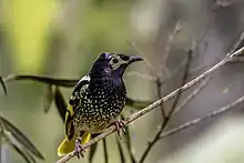 The regent honeyeater (Anthochaera phrygia) is a critically endangered bird endemic to southeastern Australia. It is commonly considered a flagship species within its range, with the efforts going into its conservation having positive effects on many other species that share its habitat. Recent genetic research suggests it is closely related to the wattlebirds.