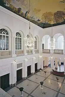 The Schmuckhof, built in the neo-baroque style, is a small inner courtyard between the White Hall, the 150 square meter Salon am Schmuckhof (110 people in rows) and the adjacent reading rooms. It leads to foyer of the Rossini-Saal.