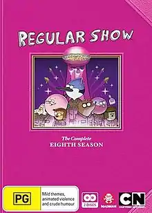 The eighth and final season of the American animated comedy television series Regular Show (promoted as Regular Show in Space), created by J. G. Quintel, which originally aired on Cartoon Network in the United States. Quintel created the series' pilot using characters from his comedy shorts for the canceled anthology series The Cartoonstitute. He developed Regular Show from his own experiences in college. Simultaneously, several of the show's main characters originated from his animated shorts The Naïve Man from Lolliland and 2 in the AM PM. The series was renewed for an eighth and final season on July 7, 2015. The season ran from September 26, 2016 to January 16, 2017 and was produced by Cartoon Network Studios.