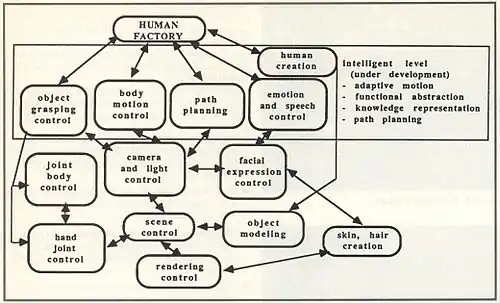 - ↑ N. Magnenat-Thalmann, E. Primeau, D. Thalmann, Abstract Muscle Action Procedures for Human Face Animation, The Visual Computer, Springer, Vol.3, 1987, pp.290-297