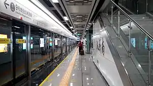 Renmin South station (Chinese: 人民南站; pinyin: Rénmín Nán Zhàn) is a Metro station of Shenzhen Metro Line 9. It opened on 28 October 2016. This station is located under the intersection of Renmin South Road and Chunfeng Road.[1]