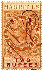 The first internal revenue stamps of Mauritius were issued on 1 October 1869. The first issue consisted of twelve values ranging from 1d to £1, each stamp portraying Queen Victoria. Stamps in this design continued to be issued until c.1900, with various changes in watermark, currency and colour. Between 1885 and 1894 there were a number of provisional surcharges.[1]
