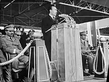 The Revolutionary Council (Arabic: مجلس الثورة) was the governmental body that ruled Algeria after the coup d'état in June 1965. Colonel Houari Boumédiène was its chairman from 19 June 1965 to 10 December 1976. It replaced the People's National Assembly and functioned as the "supreme authority of the Revolution". Boumediene then restored the People's National Assembly and dissolved the Revolutionary Council after drafting the 1976 Algerian constitution, approved by 99% of voters. He then served as president after winning the 1976 presidential election with a great majority until his death on 27 December 1978.[1] The council was initially made up of 26 members, almost all of them were officers of the Algerian People's National Army linked to the Oujda Group.[2] The members were eventually reduced to nine by 1976.[1]