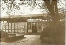 The original station and entrance building was built in brick and timber. As a consequence of the building of federal highway 42 in the 1950s and the associated reconstruction of the station forecourt, it was demolished and rebuilt in 1962 in a changed and significantly reduced form.[5]