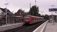 Since the timetable change on 11 December 2016, a double set consisting of a class 425 (running to Duisburg) and a class 426 (running to Heinsberg) has been used as a rule. The Rhein-Niers-Bahn was extended to Essen Hauptbahnhof via Mülheim on 15 December 2019.
