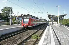 Rheinhausen station is served by five regional transport services.[8] The RE 42 and RB 33 services are operated by DB Regio NRW. RE 44 and RB 31 are operated by NordWestBahn. RB 35 is operated by VIAS.