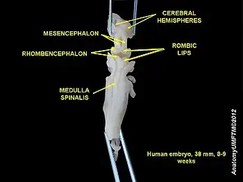 - ↑ Wingate RJ (February 2001). "The rhombic lip and early cerebellar development". Current Opinion in Neurobiology. 11 (1): 82–8. doi:10.1016/S0959-4388(00)00177-X. PMID 11179876.