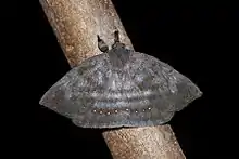 It is uncommon in lowland and hill forests. The species is characterized by significant sexual dimorphism with males having a prominent, dorsally directed fringe along the forewing costa that continues from the midpoint of the costa into the wing in a crescent shaped fold.[3]
