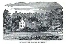 An Anglo-Saxon charter from the early 11th century mentions that the estate was given by Bishop Wulfstan to his sister. It was seized by the Danes, then regained by the monks, only to be captured by Turstin the Fleming. In 1074 the estate was presented to Ralph de Mortimer in recognition of his services to William the Conqueror.[1] Ribbesford House takes its name from the Ribbesford family, who lived there during the reign of Henry II.[6] It is believed that the house was rebuilt in the 1530s under the ownership of Sir Robert Acton.[3] Around the same time John Leland called it a "goodly manour place."[5]