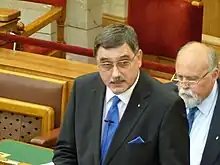 In 1998 and 2002 he managed to secure a seat again as an individual representative for Constituency X, Borsod-Abaúj-Zemplén County. Since 2000 he served as a vice chairman of the Committee on European Integration.[2] At the October 2002 municipal elections he became a member of the Borsod-Abaúj-Zemplén County Assembly. In the course of the development of the organisational structure of Fidesz-Hungarian Civic Union in 2003, he was charged with heading the Debrecen constituency. Upon the invitation of parliamentary faction leader János Áder, at the beginning of September 2004 he took over the chair of the integration cabinet from József Szájer, who had been elected member of the European Parliament.[1] He was elected MP for Sátoraljaújhely in the 2006, 2010 and 2014 elections. He is the current Chairman of the Committee on European Affairs since May 14, 2010.[2]