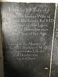 - This article incorporates text from a publication now in the public domain: Chisholm, Hugh, ed. (1911). "Blackmore, Sir Richard". Encyclopædia Britannica (11th ed.). Cambridge University Press.