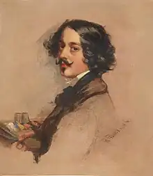 He first painted miniatures but then changed to painting larger portraits.[1] He painted Italian genre subjects and later elegant and fashionable Victorian ladies. He first sent work to galleries for sale in 1840. He exhibited at the Royal Academy of Arts in 1842 and then every year from 1846 to 1877; 77 paintings in all of which only 7 were of Italian subjects [1] and was nominated as a candidate for the academy.[4] He also exhibited 22 paintings at The British Institution, 44 at The Royal Society of British Artists, 3 at The Grosvenor Gallery and 3 at The Royal Scottish Gallery.