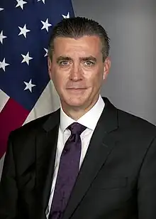 Richard Gustave Olson Jr. (born 1959[2]) is an American diplomat and career foreign service officer, who formerly served as the United States Ambassador to Pakistan. Prior to his appointment in Pakistan, Olson had served as U.S. Ambassador to the United Arab Emirates as well the Coordinating Director for Development and Economic Affairs in the U.S. Embassy, Kabul with the rank of ambassador. He is a career member of the Foreign Service, class of Career Minister.[3]