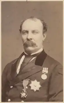 He also served in political employment at Gwalior, Indore, Mysore, Baroda and Hyderabad.[6] After retirement, he functioned as Chairman of the Hyderabad State Railway Company. He died at Hyères in France, aged 73 where he was buried. His grave bears the inscription: "Born on 25th September 1821 he entered in eternal life on 20th March 1894 at Hyères in the South of France where his mortal remains have been laid".[7]