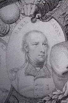 He was commissioned as an ensign in the Coldstream Guards in 1779. In 1798 he was promoted to Major-General, and in 1800 he commanded a Division in Egypt under Abercromby. In command of a Brigade of Guards under General Eyre Coote, he took part in the Siege of Alexandria in 1801.[1] He appears as one of a number of Heroes of the Egypt Campaign in a commemorative engraving of 1802.[2]