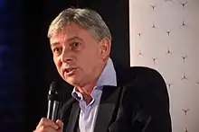 Leonard somewhat distanced himself from Jeremy Corbyn in 2017, saying "I'm too long in the tooth to be a Corbynista".[27] However, in his 2018 Labour Party Conference speech, he "confessed" to voting for Corbyn to be leader both in 2015 and 2016 because he believed Scotland would need a radical Corbyn government.[28] Under his leadership, Scottish Labour would also go on to adopt the "For the Many, Not the Few" branding of the UK Labour Party.[29]
