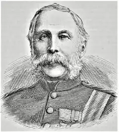 After the mutiny campaign, Wadeson served as adjutant of the 75th Regiment until December 1864 when – still with the regiment – he was promoted to captain in December 1864 and major in July 1872.[1] In December 1875 he was made a lieutenant-colonel[4] and appointed to the command of the 75th, becoming only the third regimental commander in the British Army to start his military career in the ranks.[5] After promotion to brevet colonel in December 1880, he became Lieutenant Governor of the Royal Hospital Chelsea in March 1881, where he died in office on 24 January 1885 aged 58.[1] He was buried with military honours at Brompton Cemetery, attended by many Chelsea Pensioners.[2] There is a commemorative plaque to him at the Royal Hospital.