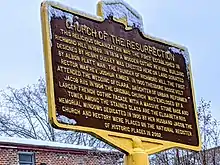 The hill referred to as Richmond Hill is a moraine created by debris and rocks collected while glaciers advanced down North America during the Wisconsin glaciation.[12][13] Prior to European colonization, the land was occupied by the Rockaway Native American group, for which the Rockaways were named.[14][15] In 1660, the Welling family purchased land in what was then the western portion of the colonial town of Rustdorp. The land would become the Welling Farm, while Rustdorp would be renamed Jamaica under British rule in 1664.[16] The Battle of Long Island, one of the bloodiest battles of the Revolutionary War, was fought in 1776 along the ridge in present-day Forest Park, near what is now the golf course clubhouse. Protected by its thickly wooded area, American riflemen used guerrilla warfare tactics to attack and defeat the advancing Hessians.[17] One of the sites that would make up modern Richmond Hill, Lefferts Farm, was said to be the site of a Revolutionary War battle. In January 1853, a Farming community was established on the south side of Jamaica Avenue between 110th and 112th Streets, known as Clarenceville. This land was purchased from the Welling estate.[16][18] Richmond Hill's name was inspired either by a suburban town near London or by Edward Richmond, a landscape architect in the mid-19th century who designed much of the neighborhood.[12][19]