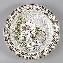 William's son, Edward John (1814–96) was also very active,[12] and his two sons took the businesses into the 20th century. Edward John's sister Emma married a Francis Morley (d. 1883) who was one of a number of other names of partners appearing in business names with the Ridgways. "Cauldon" also appears in various company names and brands; Cauldon Ware, was a term for early transfer-printed wares, much of which was exported to the United States,[13]