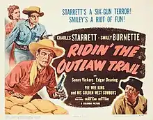 Ridin' the Outlaw Trail is a 1951 American Western film directed by Fred F. Sears and starring Charles Starrett, Sunny Vickers and Edgar Dearing.[1] The film's sets were designed by the art director Charles Clague. Shot at the Iverson Ranch, it is part of the Durango Kid series of films.