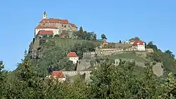 Riegersburg Castle is a medieval castle situated on a dormant volcano above the town of Riegersburg in the Austrian state of Styria. The castle is owned by the Princely Family of Liechtenstein and contains a museum with changing exhibitions. Riegersburg Castle is situated at a height of 450 m (1,480 ft).[1]