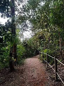 - Colugo Trail, a 582-meter-long trail; located above the Quarry Wetland.[12] The Colugo Trail also leads to a deck called the Colugo Deck that is a 31-meter-tall lookout point above the quarry.[3]