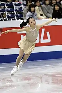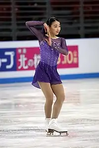 Kihira was chosen to represent Japan at the 2021 World Championships, where she was rated as a contender for the title alongside the top Russian skaters.[49] She placed second in the short program after her triple Axel and toe loop were a quarter of a rotation short.[50] In the free skate, Kihira doubled her first attempt at a triple Axel, fell on an underrotated second attempt, and underrotated two other jumps, finishing ninth in that segment and dropping to seventh place overall.[51] Her placement, combined with that of Sakamoto, who finished above her in sixth, qualified three ladies' berths for Japan to the 2022 Winter Olympics.[52]