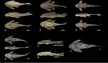The loricariid labeled with the number 3 in this image is a specimen of Rineloricaria latirostris.