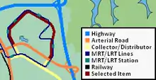 Bukit Panjang Ring Road is colored brown on this map.