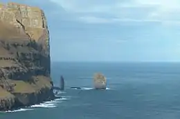 The stacks can be viewed by walking north from Eiði then turning east towards the coast and following the low cliffs for a short way. Other good views can be had on a clear day from Tjørnuvík on the island of Streymoy.[5]