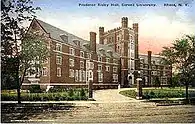 Prudence Risley Residential College for the Creative and Performing Arts, commonly known as Risley Residential College, Risley Hall, or just Risley, is a program house (themed residence hall) at Cornell University. Unlike most other dormitories on campus, Risley is a residential college; house members, or "Risleyites," have some say in the administration of the residence hall, can continue to reside there as long as they are enrolled at Cornell, are encouraged to eat together at the in-house dining hall, and participate in educational activities such as guest lectures within the dormitory.