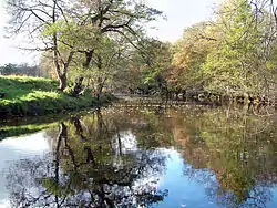 The river was also used to power the many textile mills that were built along the Derwent between Matlock Bath and Derby. Initially, the need for water power was quite modest, for example Lombe's Silk Mill in Derby, which is considered to be the forerunner of the later cotton mills, only needed to use the power provided by a small mill stream, and Richard Arkwright's Cromford Mill, the world's first water-powered cotton spinning mill, only used a small tributary of the Derwent in conjunction with a lead mine sough.[15] The later mills at Belper, Darley Abbey and Masson Mill were much larger and needed to harness the full power of the river to drive their complex machinery. This required the construction of large weirs across the Derwent that still remain as significant features in the riverscape.[16]