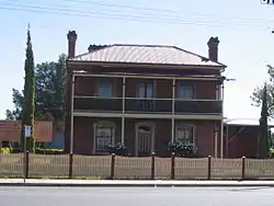 Cattle raising was the major industry in the 1840s with sheep becoming predominant in the 1860s.[24] At this time many Victorians settled in the Riverina to breed sheep and cattle to feed the miners taking part in the Victorian Gold Rush. The herds were considered inferior at first, but these pastures were good for stock, and the land which seemed a desert was actually good fattening country.[34] In the 1860s and 1870s, German settlers from the Barossa Valley travelled upstream to settle in the eastern Riverina. Because of their religious distinctiveness as Lutherans, they preferred to form clustered German settlements.[35] In 1867 and 1868 several land parcels were taken up in the Jindera area.[36] 56 German farmers, in 1869, took six weeks to travel six hundred miles in covered wagons to establish the town of Walla Walla.[37] Nearby Holbrook was originally named Germantown after these settlers until changing its name in 1914 as a result of tensions caused by World War I.[38]