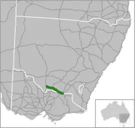 - ↑ "Map of the Riverina Highway, NSW". Bonzle Digital Atlas of Australia. 2016. Retrieved 11 November 2016.