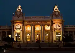 The cornerstone for the first permanent Riverside County Courthouse was laid on May 7, 1903, and the building was completed in June 1904.[3][4] The Beaux Arts courthouse occupies nearly one city block and is modeled on the Grand Palais in Paris.[5] Franklin P. Burnham is credited as the architect.[6]