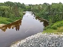 - 3.6 km (2.2 mi) to the south more or less parallel to the shore of the estuary of Saint Lawrence, forming two loops to the east, up to a bend in the river;