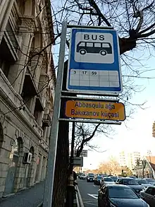 Road signs in Azerbaijan are similar to the road sign system of post-Soviet states (as well as neighboring Armenia, Georgia and Russia) that ensure that transport vehicles move safely and orderly, as well as to inform the participants of traffic built-in graphic icons. They generally conform to the Vienna Convention on Road Traffic and Vienna Convention on Road Signs and Signals.[1]