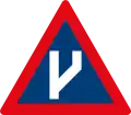 Roadway narrows from the right side ahead