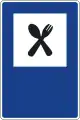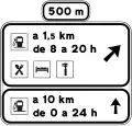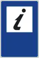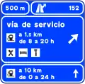 Indication signs inform the driver about something of interest. These signs are square or rectangular, blue with white elements and border. The signs are listed below along with their reference and corresponding legend as described in the General Traffic Regulations (Reglamento General de la Circulación).[5]