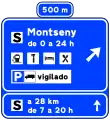 Road signs in Spain are regulated in Normas y señales reguladores de la circulación vial.[1] They conform to the general pattern of those used in most other European countries. Spain is an original signatory to the 1968 Vienna Convention of Road Signs and Signals.[2] Spain signed this convention on November 8, 1968, but has yet to fully ratify it.