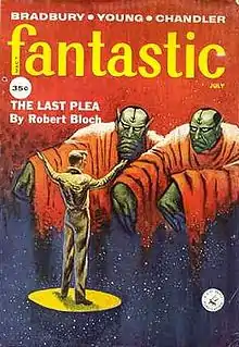 Bloch's "The Last Plea" was the cover story for the July 1959 issue of Fantastic.
