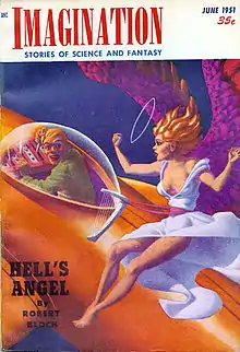 Bloch's novella "Hell's Angel" was the cover story in the June 1951 issue of Imagination, illustrated by Hannes Bok.