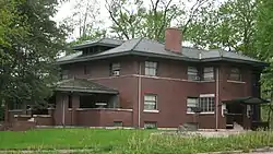Robert C. Graham House, also known as Mimi's House and the Kelly-Graham House, is a historic home located at Washington, Daviess County, Indiana. It was built in 1912, and is a large two-story, Prairie School style glazed red brick dwelling. It has a low pitched hipped roof with wide overhanging eaves and covered with green Spanish tile. Its porches feature mosaic tile floors. From 1918 to 1967, it was the home of automobile manufacturer Robert C. Graham (1885-1967).[2]: 2–3