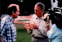 Robert Michelson being interviewed by Alan Alda at the 1995 International Aerial Robotics Competition during the filming of Scientific American Frontiers.[78]