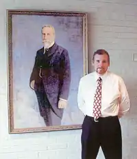 Robert Michelson next to a portrait of relative Christian Michelsen, at the Chr. Michelsen Institute[2] in Bergen Norway.