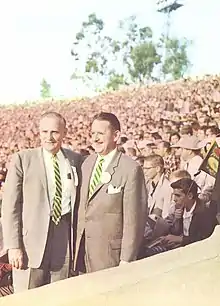 Holmes convened a special session of the Oregon Legislature, for the purpose of lowering taxes, in his first year as governor.[3] Reacting to an unexpected budget surplus, he initially proposed a 10% tax cut, as well as a $5 million per year contribution to the Common School Fund, which would also have served to reduce taxes.[4] The 19 day session concluded in mid-November; the compromise reached between House Democrats and Senate Republicans reflected a 20% cut in taxes.[5] The Associated Press identified the tax session as the number one news story in the state in 1957, ahead of the prosecution of the Teamsters.[6]