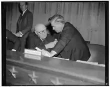 Doughton talking with Washington (state) Congressman Charles H. Leavy in 1939.