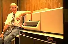 After the United States Environmental Protection Agency (EPA) was established in 1970, it became a major customer for Finnigan's GC/MS.[5][11] The EPA surveyed possible monitoring instruments for use in monitoring organic pollutants. Speed, cost, and performance were all important concerns. The target machine was projected as having the ability to scan for pesticides with a resolving power of 1,000 to 10,000, across a broad range of 10 nanograms to one microgram. A computer-controlled system was desirable. An international array of instruments were reviewed, of which only two used quadrupole technology. An expert panel recommended Finnigan's quadrupole GC/MS to the EPA for further evaluation, and twenty Finnigan Model 1015/System 150 instruments were ordered soon after by the EPA.[11]: 108 Finnigan published a 1979 study, based on users, indicating that in spite of the high initial cost of the equipment, the Finnigan GC/MS was reliable and cost-effective.[13] By 1979, the Finnigan GC/MS was the preferred instrument at the EPA for the analysis of environmental pollutants in water and wastewater.[1][14][15] The models most generally used were Finnigan Corporation's 1015 and 3000 series of quadrupole mass spectrometers with a data system based on DEC's PDP-8 computers.[14] The EPA also based its instruction manuals and standards for environmental testing on the Finnigan GC/MS, publishing the results in the Federal Register in 1979.[16][2] By 1984, all public water was to be tested by using a GC/MS apparatus.[17] In the 1980s, an estimated 60-70% of Finnigan's GC/MS sales went to the environmental market.[5]