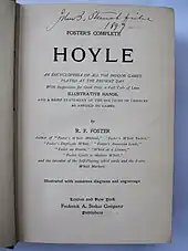 - Foster's Complete Hoyle: An Encyclopedia of All the Indoor Games Played at the Present Day With Suggestions for Good Play, a Full Code of Laws. Illustrative Hands. And a Brief Statement of the Doctrine of Chance as Applied to Games (1897), 625 pp.LCCN 04-11753 – after the 1740s–50s treatises by Edmond Hoyle